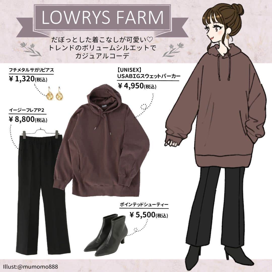 michill_officialさんのインスタグラム写真 - (michill_officialInstagram)「【LOWRYS FARM】 だぼっとした着こなしがかわいい♡トレンドのボリュームシルエットでカジュアルコーデ . LOWRYS FARM「USABIGスウェットパーカー」は着丈が長めでリラックス感のある ...