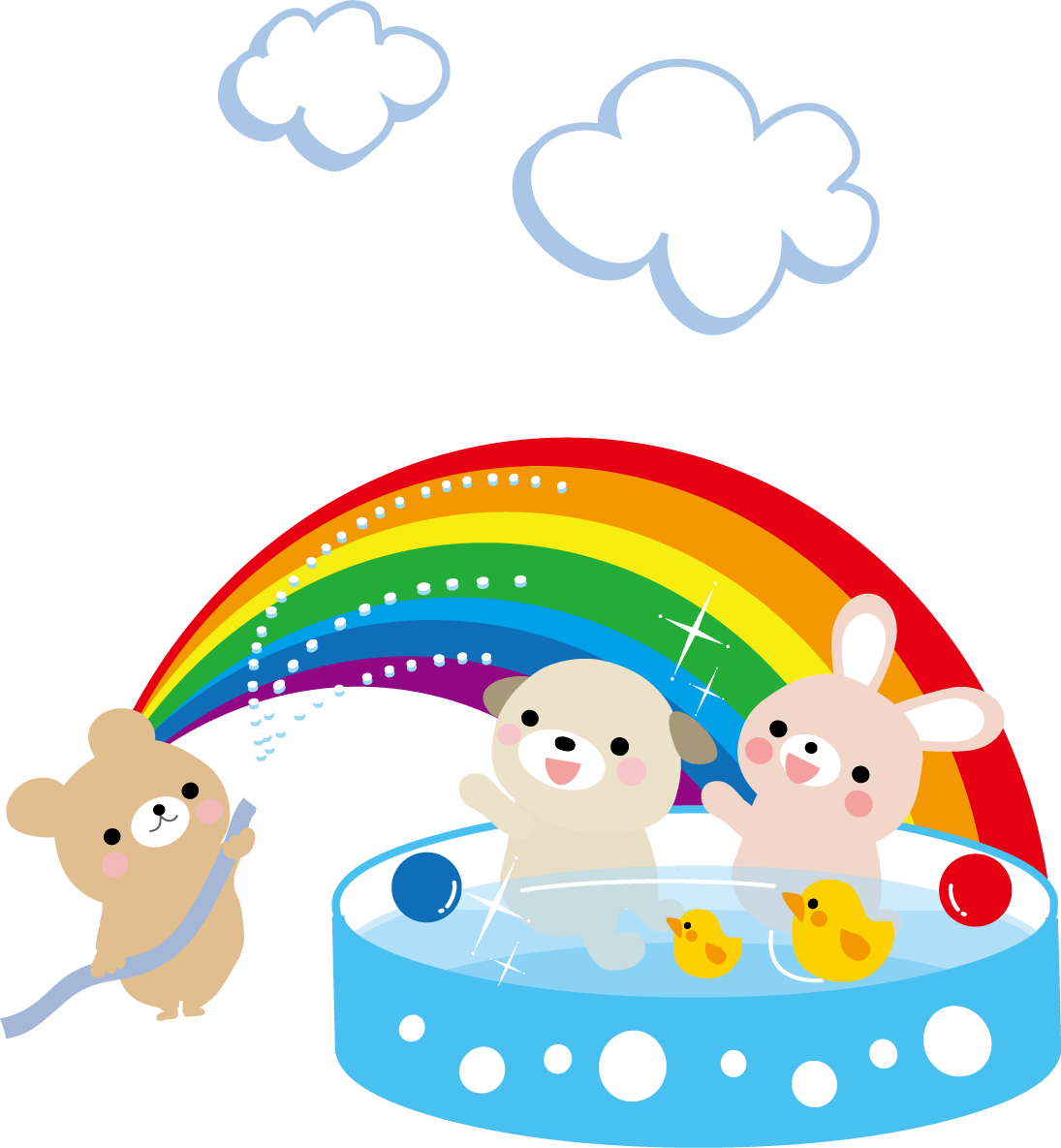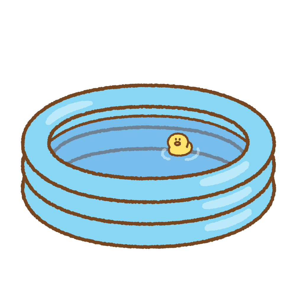 ビニールプール2(ボール、あひる、浮き輪、じょうろ、夏、子供、幼児、水遊び):イラスト無料